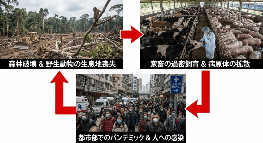 事実、新しく発生する感染症の多くは動物由来です。森林破壊などで環境が不健康になり、野生動物と人間の距離が縮まったことが一因とされています。ワンヘルスとは、これら3つの要素をバラバラに考えるのではなく、専門分野の垣根を越えて協力し、地球全体の健康を包括的に守っていこうとするアプローチなのです。